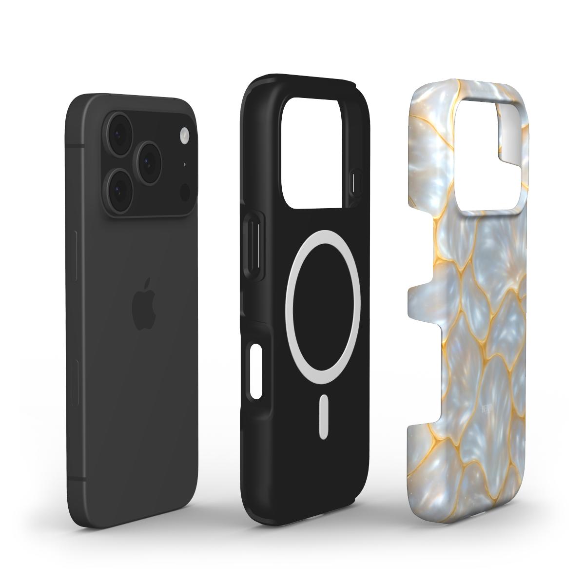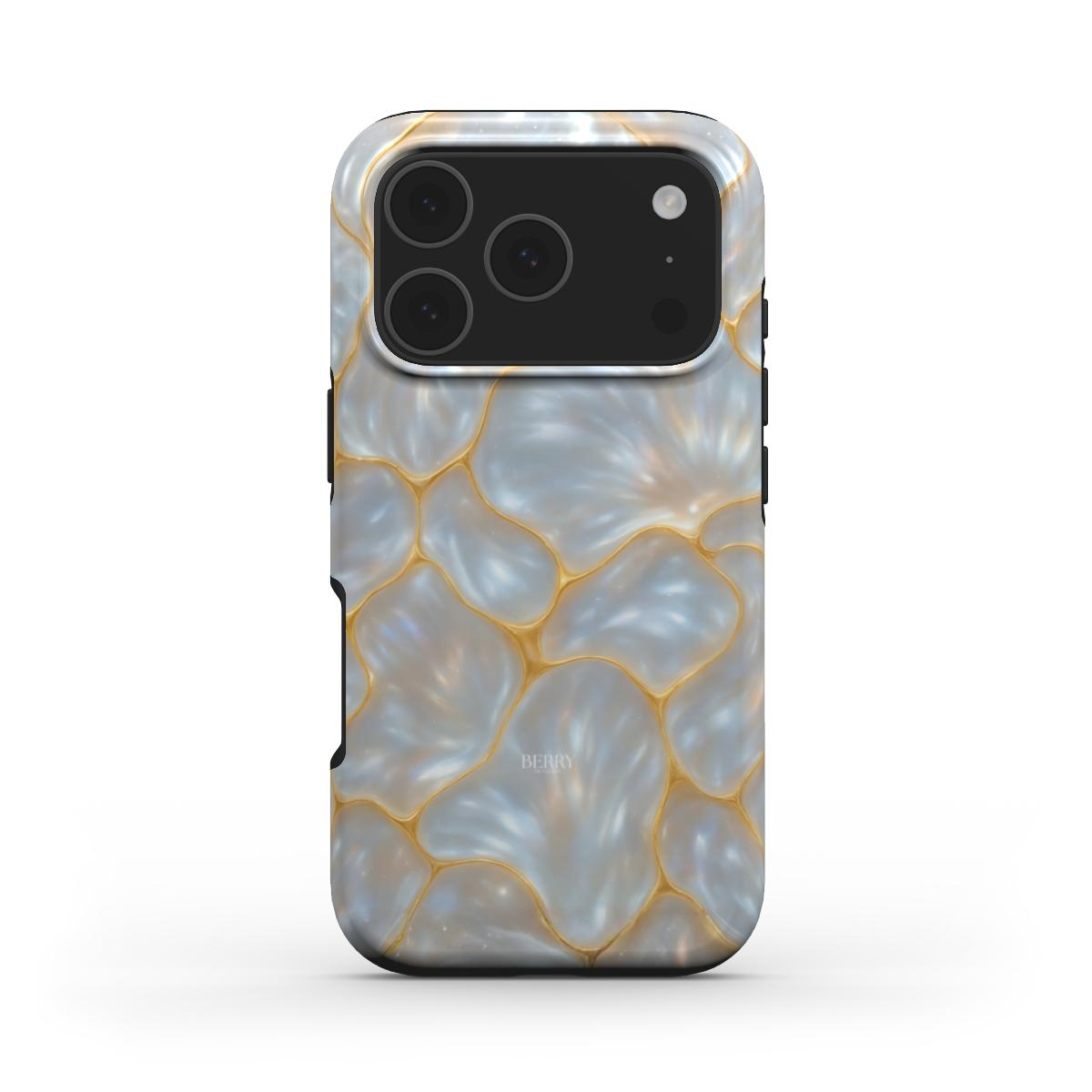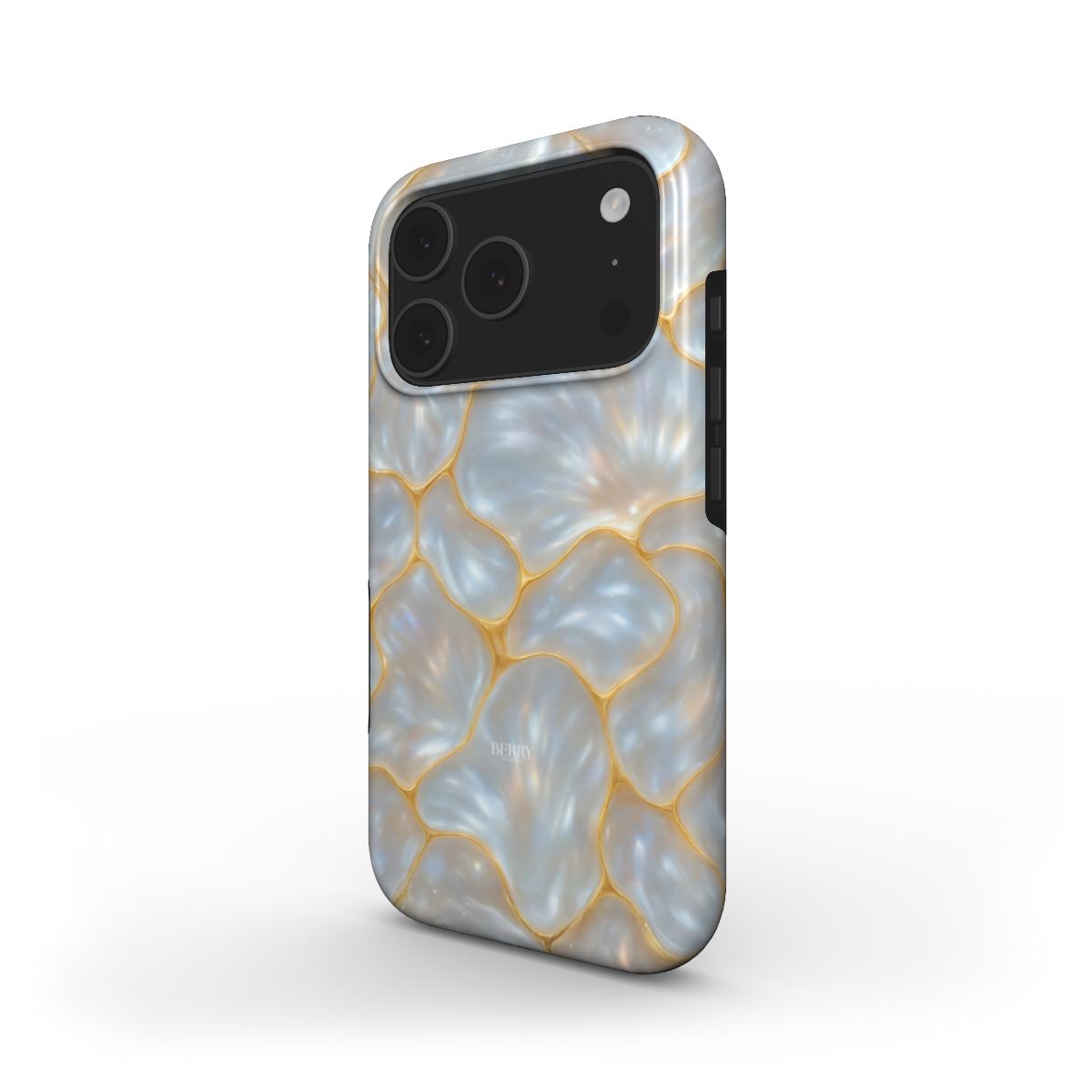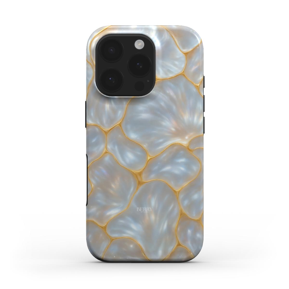 Magic Golden feels like floating mother of pearl caught in sunlight with golden lines that break like little flashes of luxury. The case shifts between cool blue shades and warm golden glow a bit like sea foam meets champagne. Perfect for those who love a magical touch in everyday life where accessories are not only practical but feel like little pieces of art.